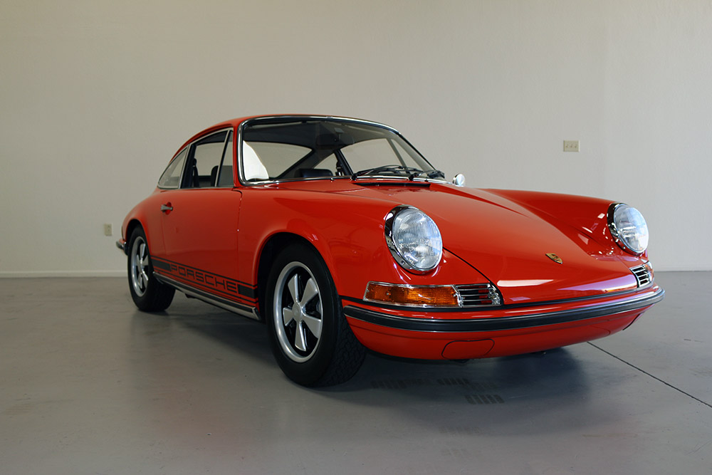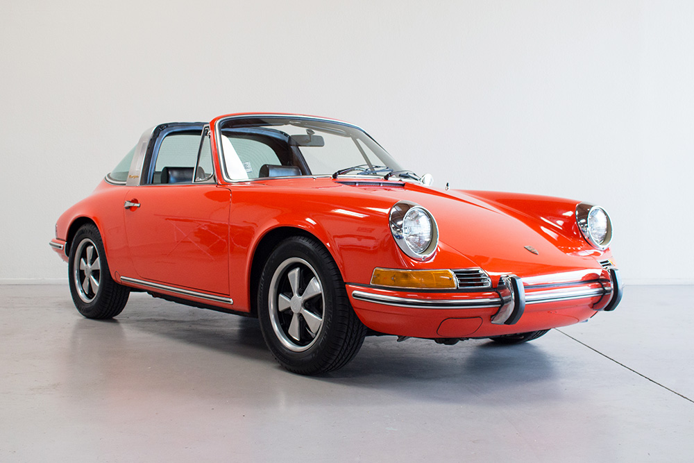 This stunning 1968 Porsche 911 Soft Window Targa is painted in its original Tangerine over its all-original black vinyl interior. The car has received new carpet but the door panels and pockets, dash,seats and targa top appear to be all original and in outstanding shape...