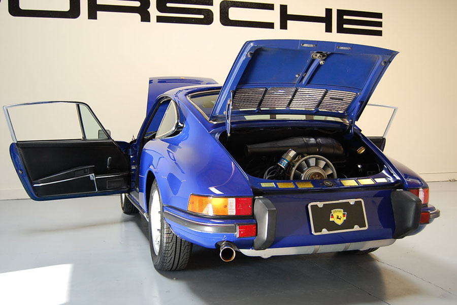 1971 Porsche 911T Coupe in original Metallic Blue with square weave Black Leatherette interior. An original California US delivery, it was a rust free example prior to being restored! This car was restored in Germany 3 1/2 years ago by SL-Classics, a top notch German car restorer. This was an every nut and bolt, ground up Rotisserie restoration to the highest standard...
