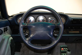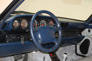 Lapis Blue with Grey interior. Last of the air-cooled 911s.