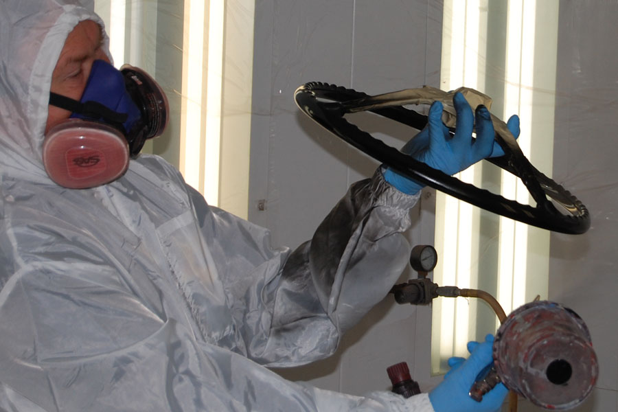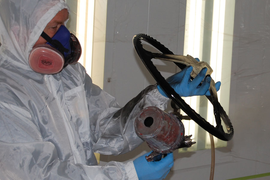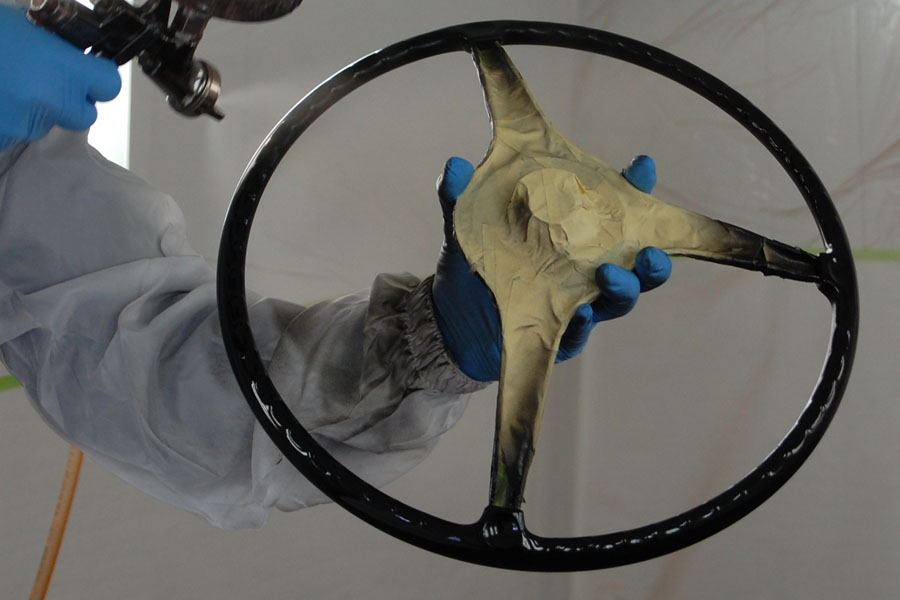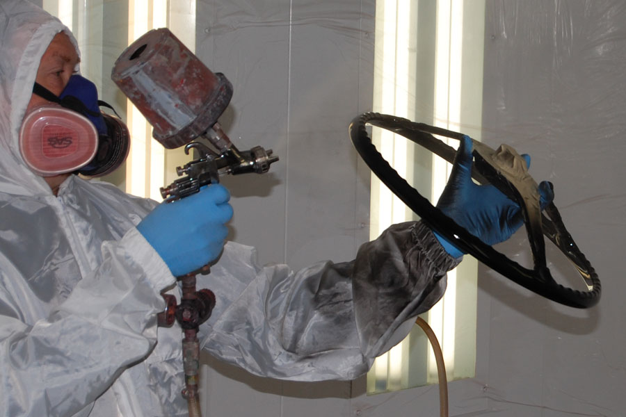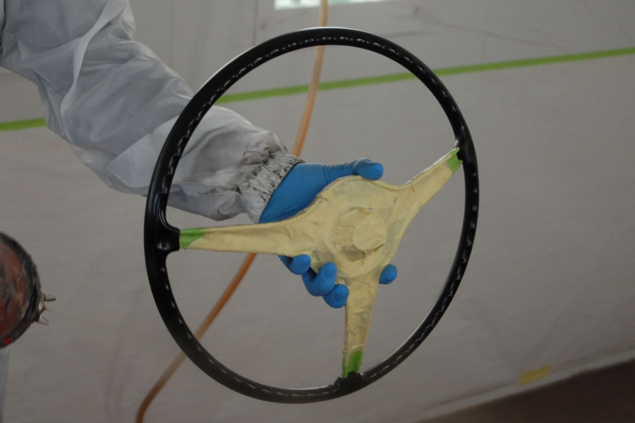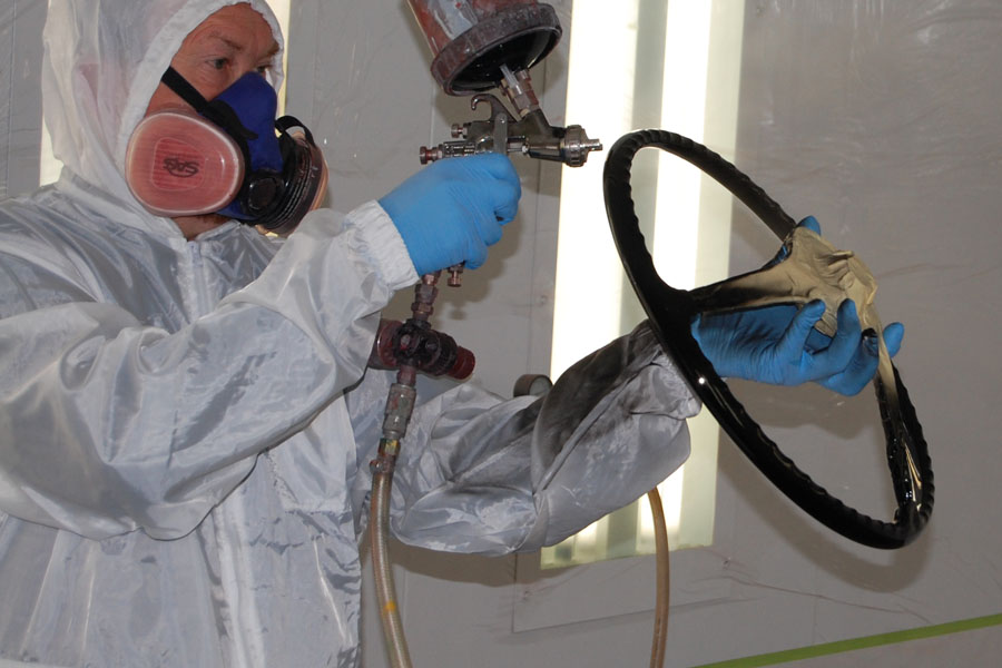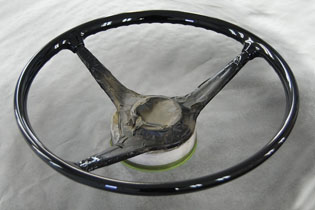 Richard is restoring the finish on a 356 steering wheel.