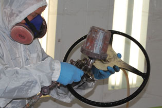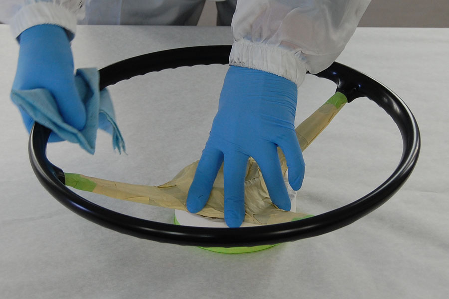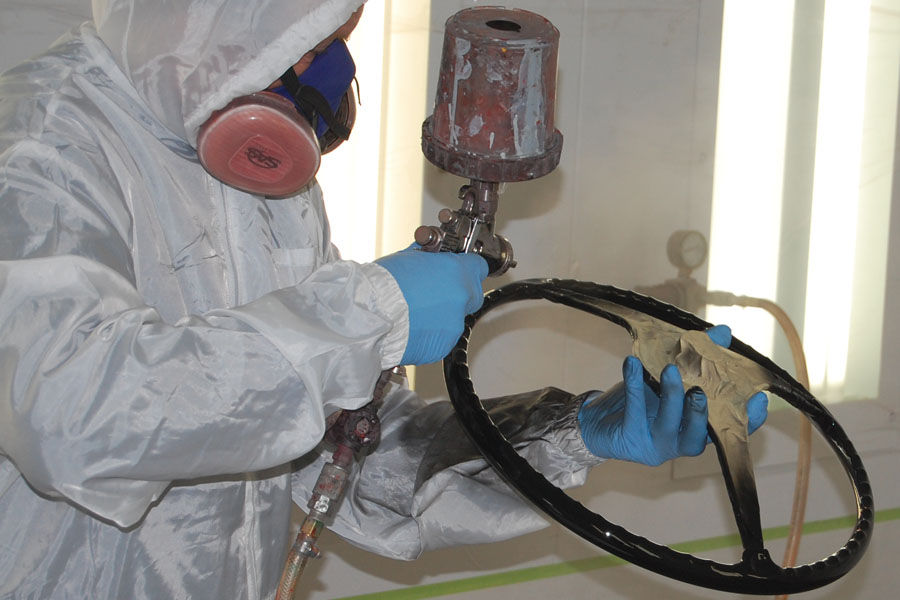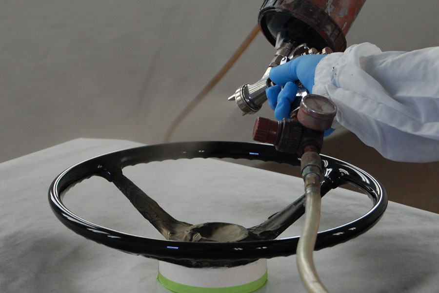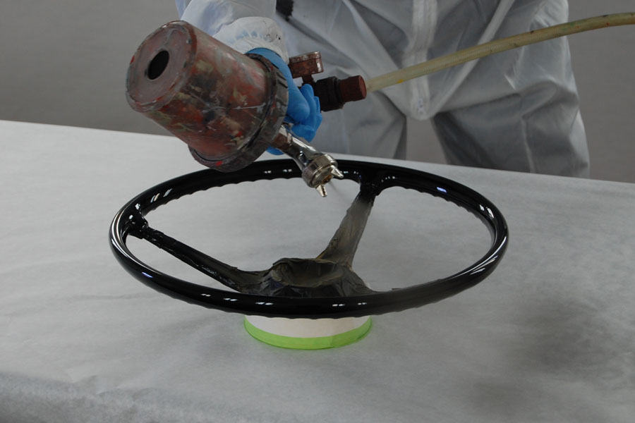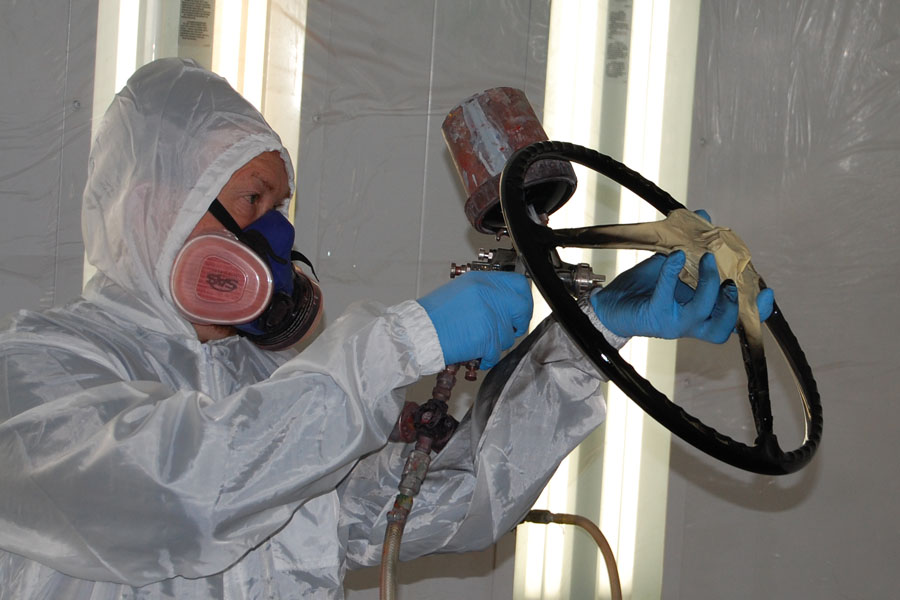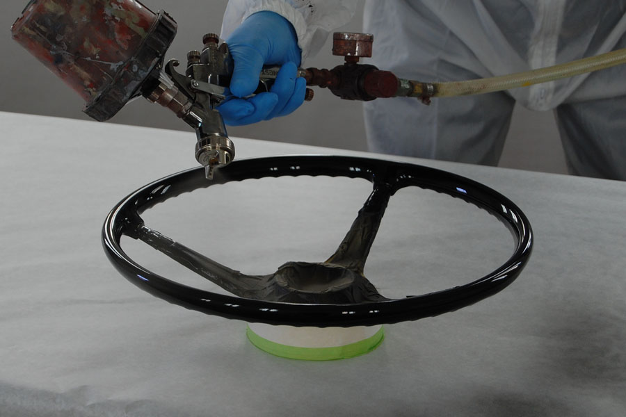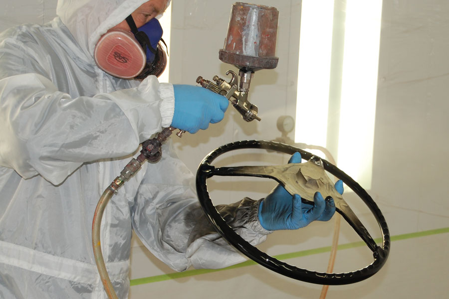 Richard is restoring the finish on a 356 steering wheel.