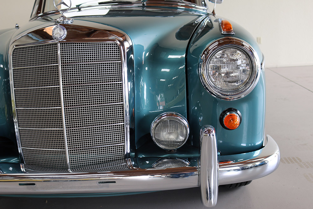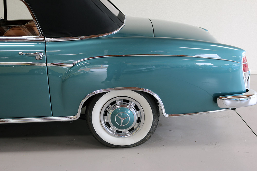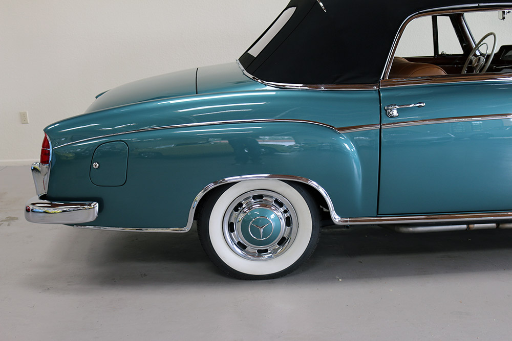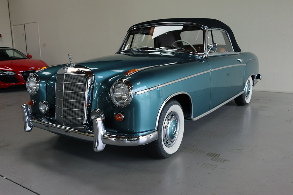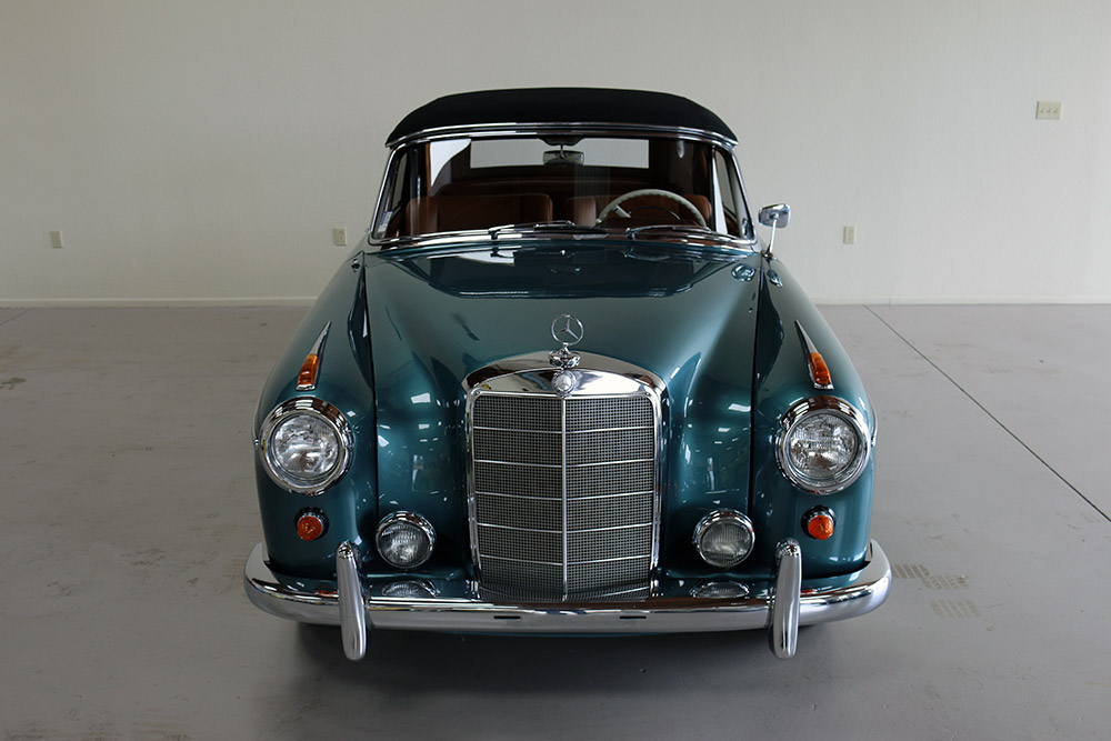 Now available from CPR Classic Sales is this beautiful 1959 Mercedes Benz 220SE refinished in Mercedes-Benz metallic turquoise over a brown German leather interior. The car is a one owner California car that was pampered by its Malibu owner since new.