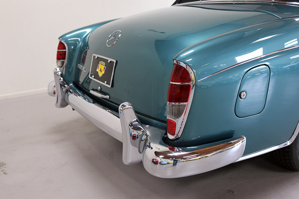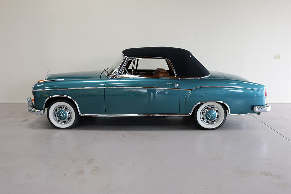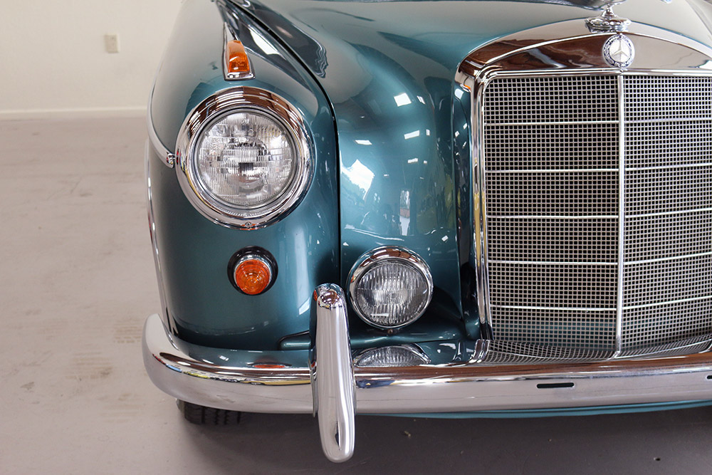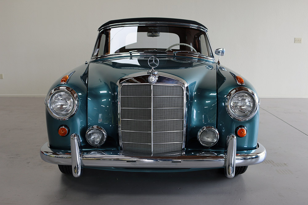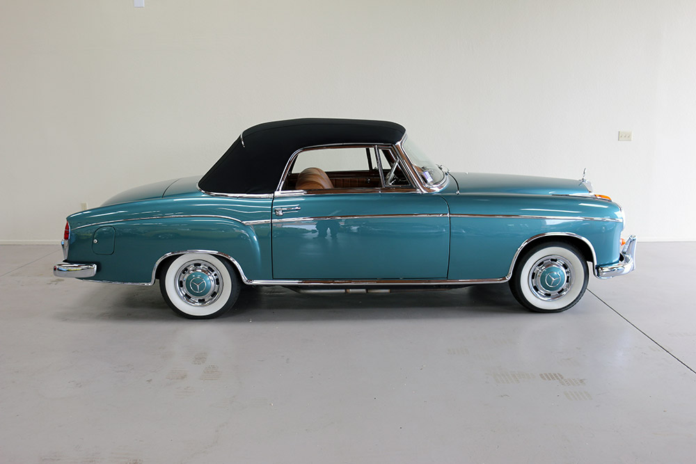 Now available from CPR Classic Sales is this beautiful 1959 Mercedes Benz 220SE refinished in Mercedes-Benz metallic turquoise over a brown German leather interior. The car is a one owner California car that was pampered by its Malibu owner since new.