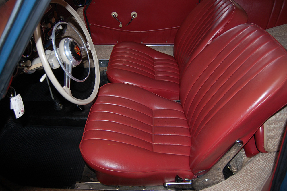 1957 Porsche 356 Sunroof Coupe Aqua Blue with Red interior. Numbers Matching. Recent engine overhaul with Big Bore Kit. This wonderful rare model drives perfectly and is a pleasure to offer. Call