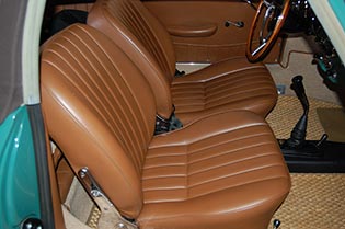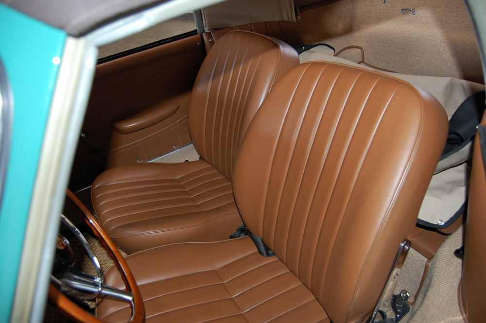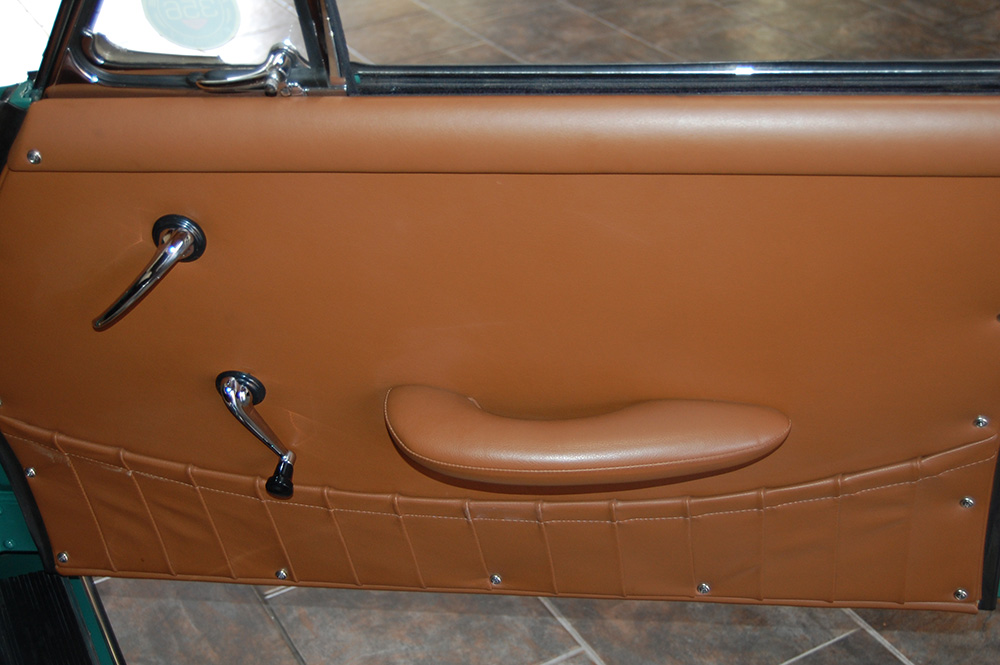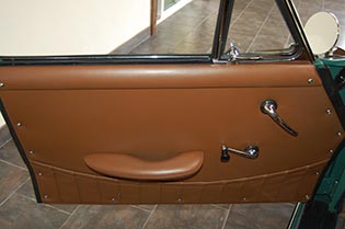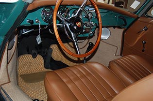 1965 Porsche 356 Smyrna Green/Fawn Brown interior with Oatmeal carpet. This wonderful rust and damage free Arizona car just arrived having benefiting from a 5 year every nut and bolt rotisserie restoration. $198,000.00 in receipts, car has its original numbers matching engine and body panels. Stock wheels are available for those who perfer stock. Has a big bore kit, Zimm cam. Perfect gaps and paint to show quality. Rudge style alloy wheels. Stock wheels are available for those who perfer stock. Radio with iPod mod. This is the best running 356 Cabriolet ever and can be driven anywhere. We drove it back from Arizona and it preformed perfectly. Call