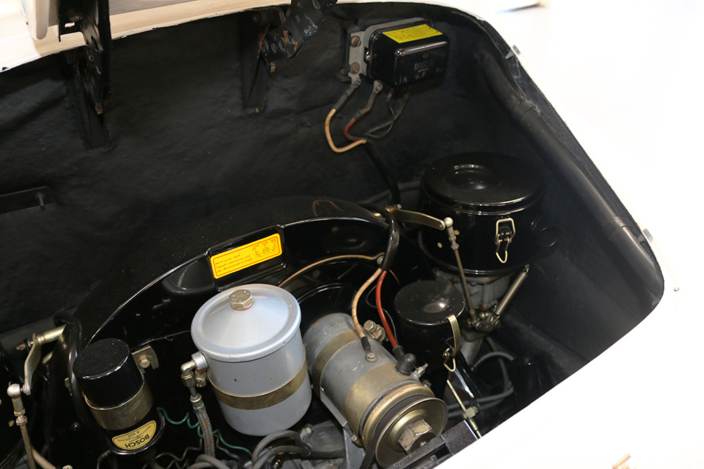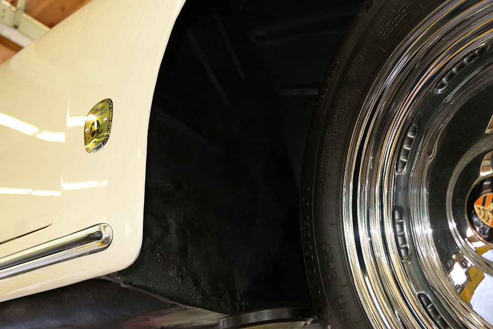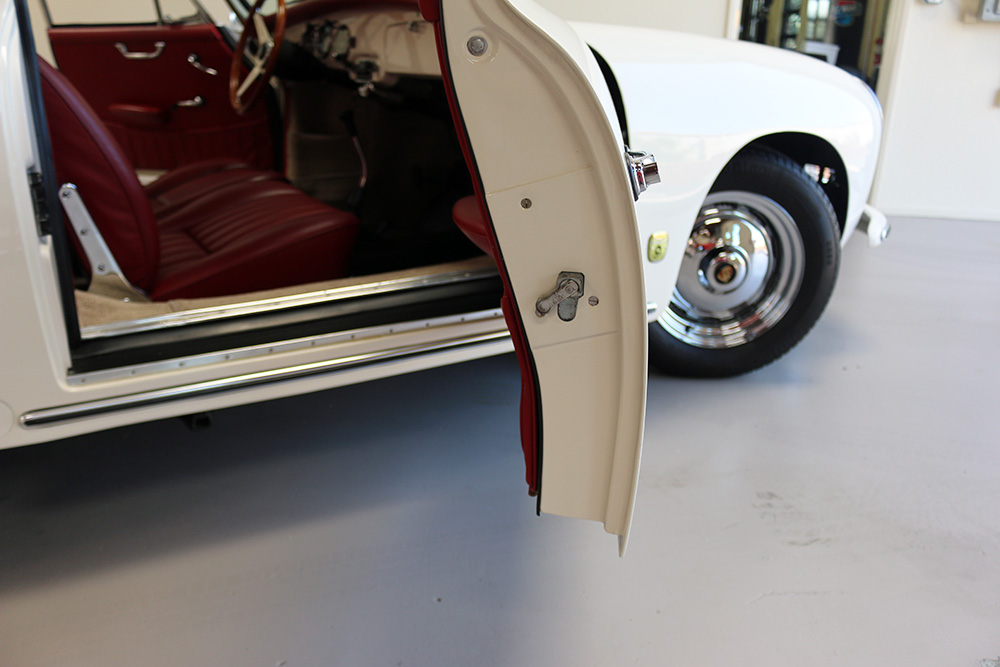1961 356 Normal Sunroof, numbers matching engine and transmission, original black plate California car. New tires and restored wheels. Recent body and paint work by CPR Classic Restoration, engine very low time since overhaul of the original engine with big bore upgrade. Transmission is quiet and shifts smooth as butter as it should. Car is sorted, and in a high state of excellence. This very rare original factory Golde Sunroof T-5 will make a welcome addition to anyone's collection.Please call (760) 723-8900 for pricing and further information. Click any image for a larger size...