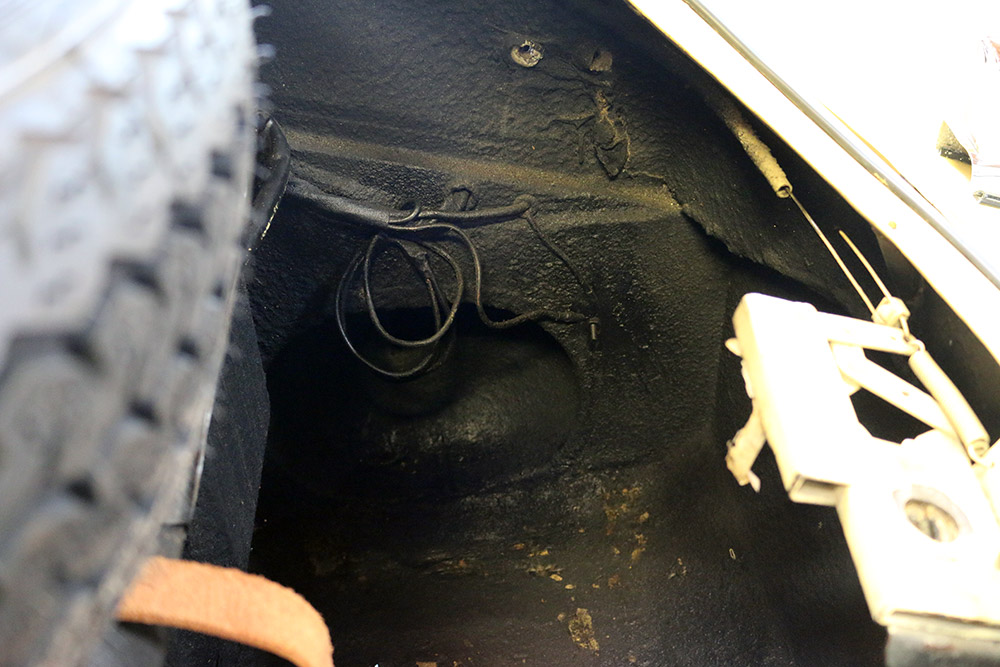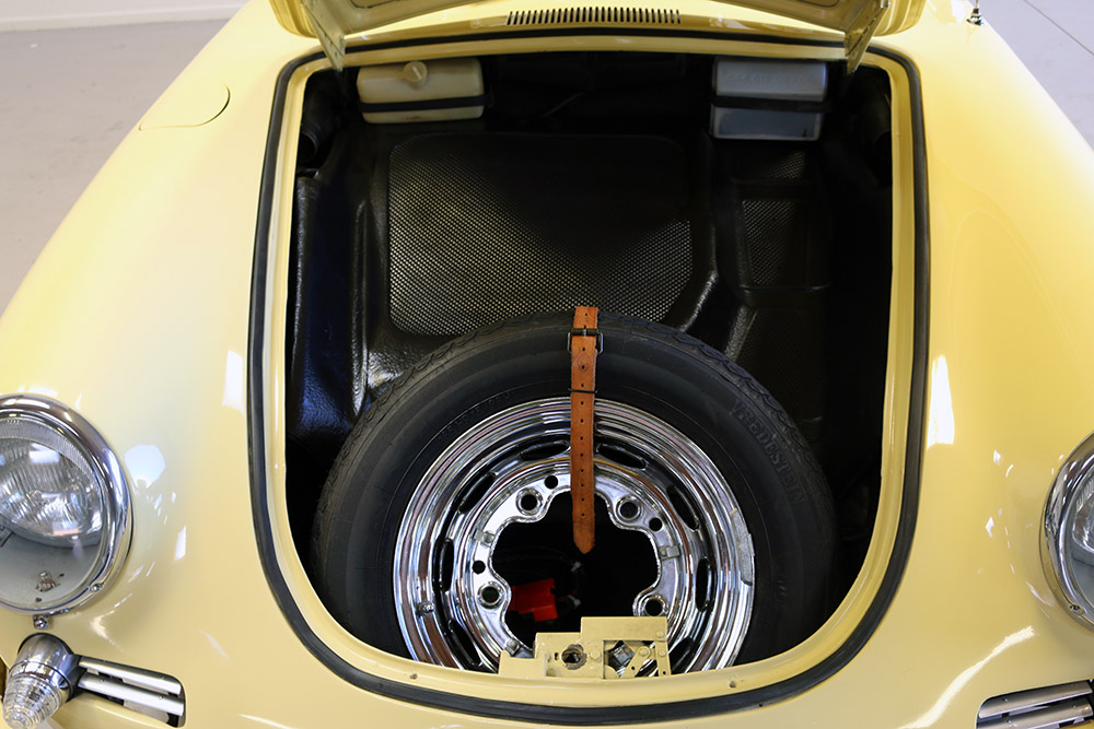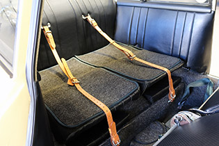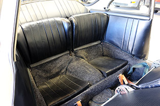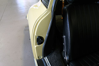 Upgrades include hidden front disk brakes which allow the use of the original wheels as there is a false drum outside of the disk. Very recent engine performance overhaul including big bore kit, mild cams and a horsepower we estimate to be about 115, making this car very drivable on highways at freeway speed. SOLD Click any image for a larger size...