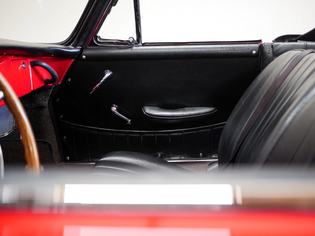 This late, factory-disc-brake 356 is a very-well-kept example retaining many of its original parts and matches its Certificate of Authenticity completely, including its 75-horsepower engine, four-speed transaxle, black leather interior, and Signal Red (6407) exterior color.