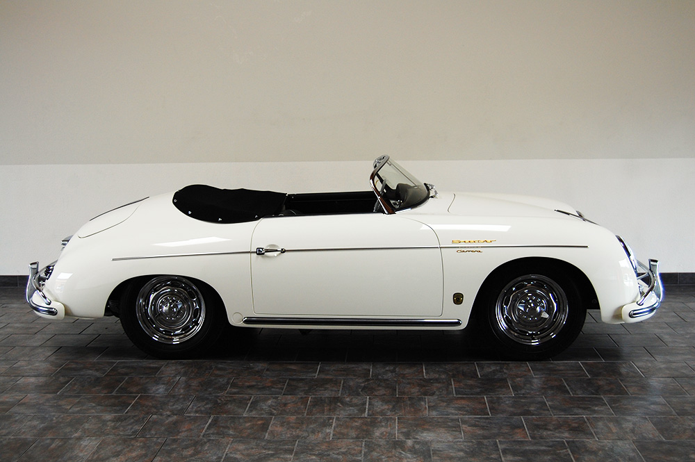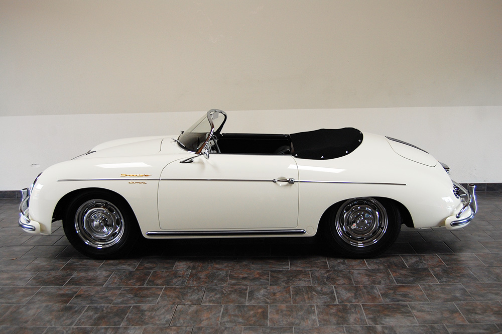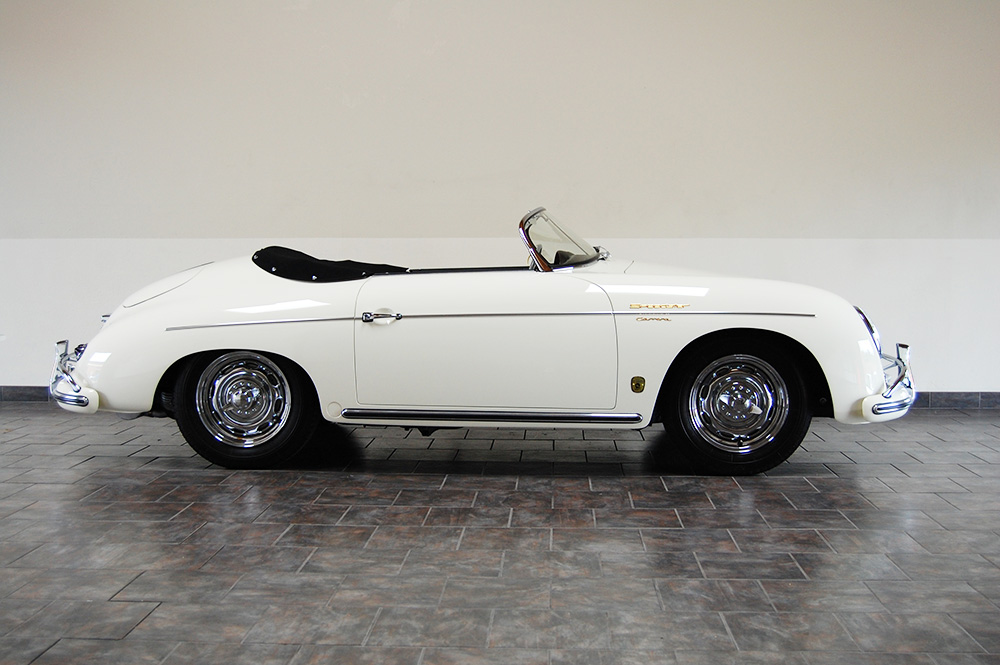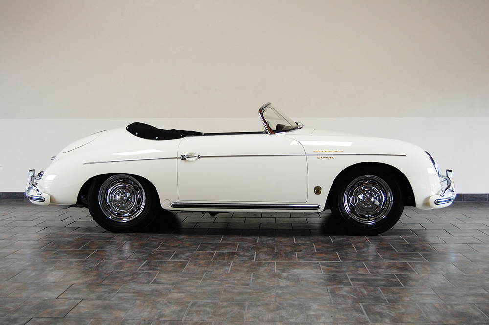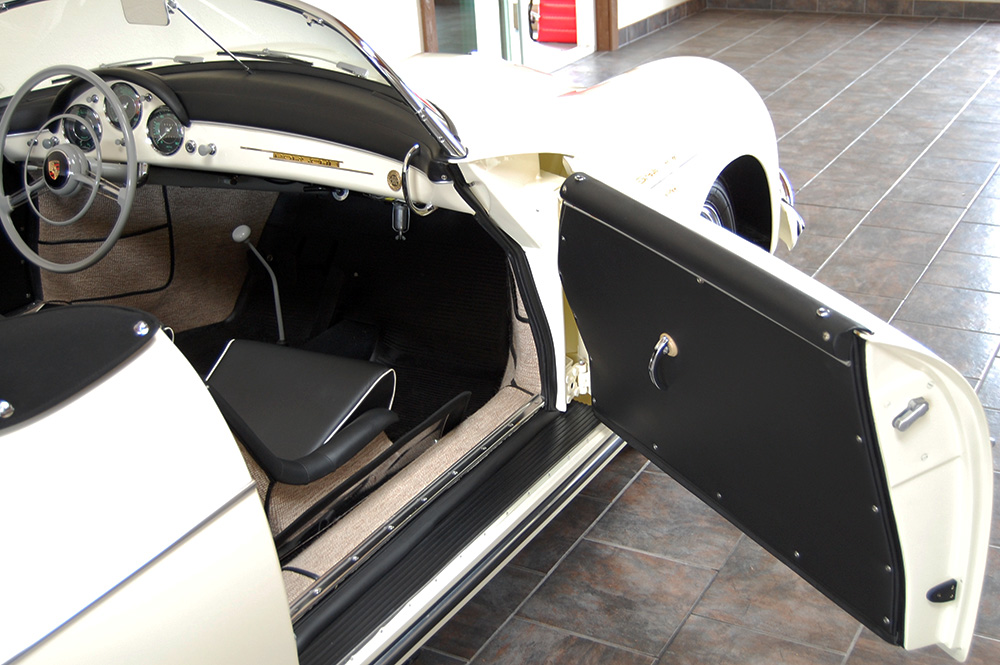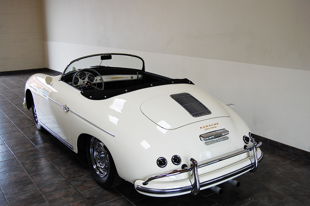 This gorgeous white 1957 356 A (T1) Carrera Speedster is the 50th of an estimated 75 built, and it is a solid and rust-free example with no issues. Its factory-issued Certificate of Authenticity states that 83087 was completed on March 20, 1957, and it was fitted with U.S.-specification chromed over-rider bumpers, sealed-beam headlamps, and a deluxe horn ring. This Carrera GS Speedster has travelled but 29,000 miles from new, in the hands of only four owners, with the fourth owner retaining the car for more than 40 years. Its first purchaser is shown to have been Arnold D. Ladd, of Whippany, New Jersey, who ordered it from Porsche's New York City importer, Max Hoffman.