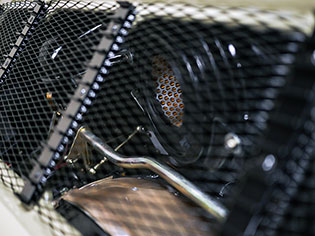 The Mechanical Fuel Injection pump has a custom-ground space cam, has been converted to self-contained oiling and has had the cold-start solenoid deleted. The MFI also benefits from manual mixture control, rebuilt throttle bodies, modified intake stacks and a modified airbox to clear the intake stacks and MFI pump. A new fuel pump was relocated to the front crossmember to reduce cavitation and feeds from a reproduction 100L (26.4gal) sports-purpose fuel tank with under-hood filler neck.