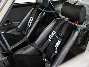 Front torsion bars are 22mm, plated and plugged, and rears are 27mm, plated and plugged. The front dampers are Bilstein Sports with raised and gusseted spindles. Brackets to put the bump-steer-adjustable tie-rods in double-shear were also welded to the front strut housing. Inner tie rods are Turbo-style. Anti-roll bars are RSR-style, hollow bars with reinforced body mounts front and rear. End links are adjustable front and rear to remove preload. The car was corner-weighted after assembly and can be corner-weighted for the purchaser’s weight at no charge.