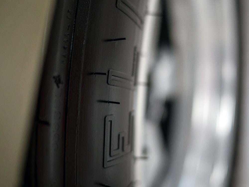 The rubbers that meet the road are Michelin TB15 tarmac rally compound tires mounted on 8x15 Fuchs wheels front and 9x15 Fuchs wheels rear.