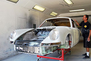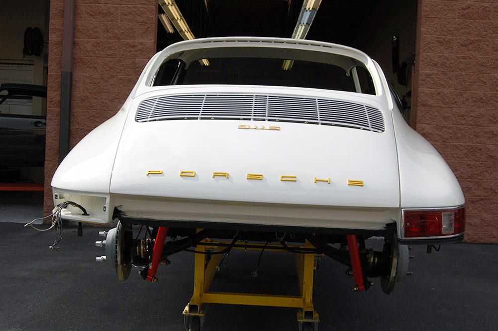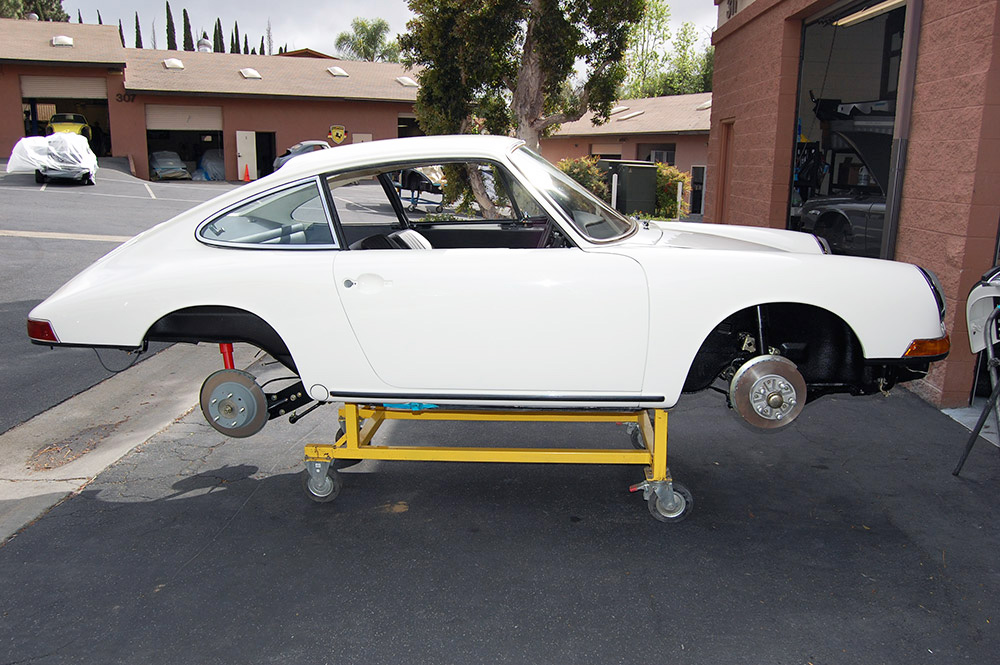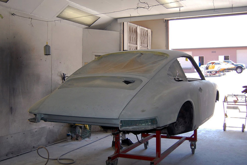 After all body work and fitment was completed the car was primed and properly prepped for paint. Following prep, the car was finished in Glasurit Light Ivory giving the car its stunning finish. Then the car went off to Autos International in Sorrento Valley to have its proper black German leather interior and carpets installed.