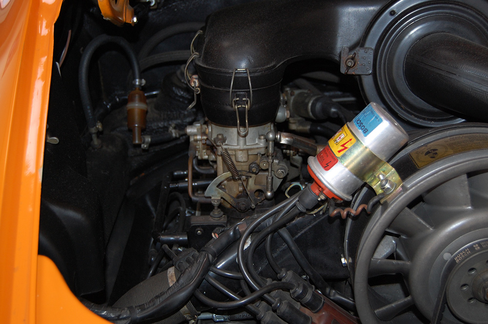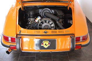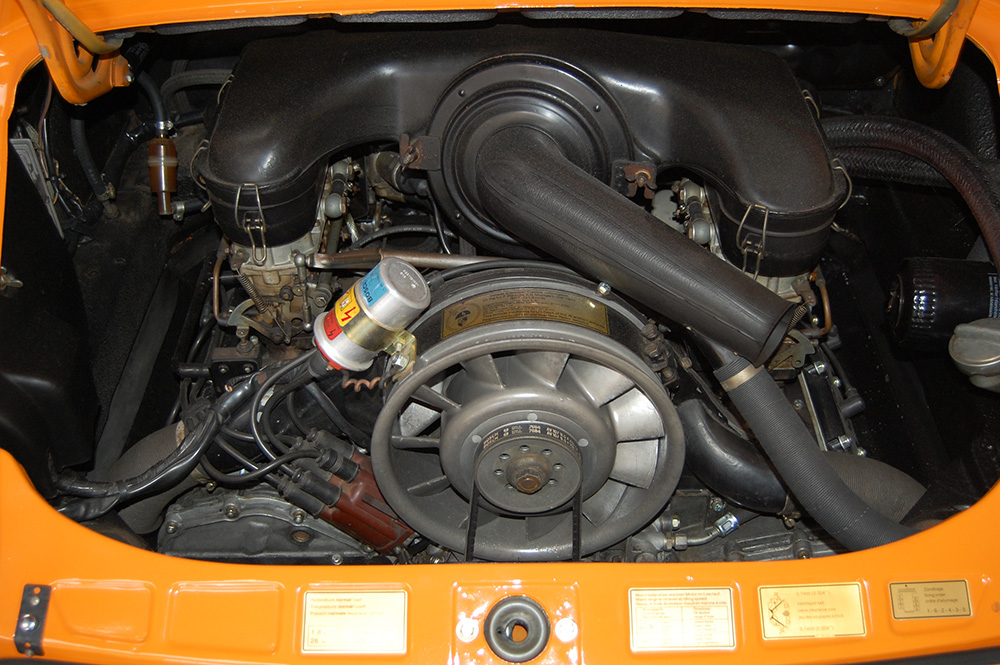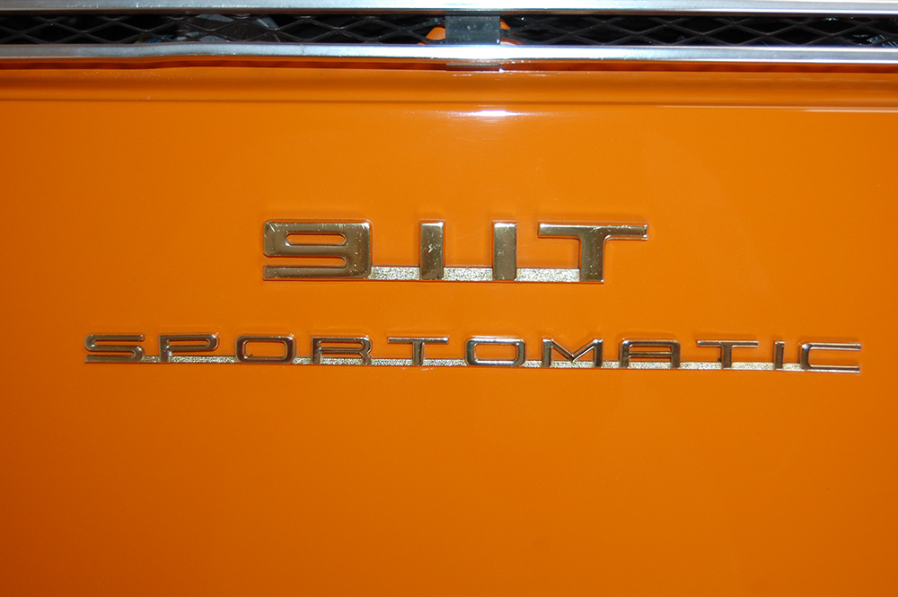1971 Porsche 911T Signal Orange rare Sportomatic 4 speed with original Black square weave interior and carpet.