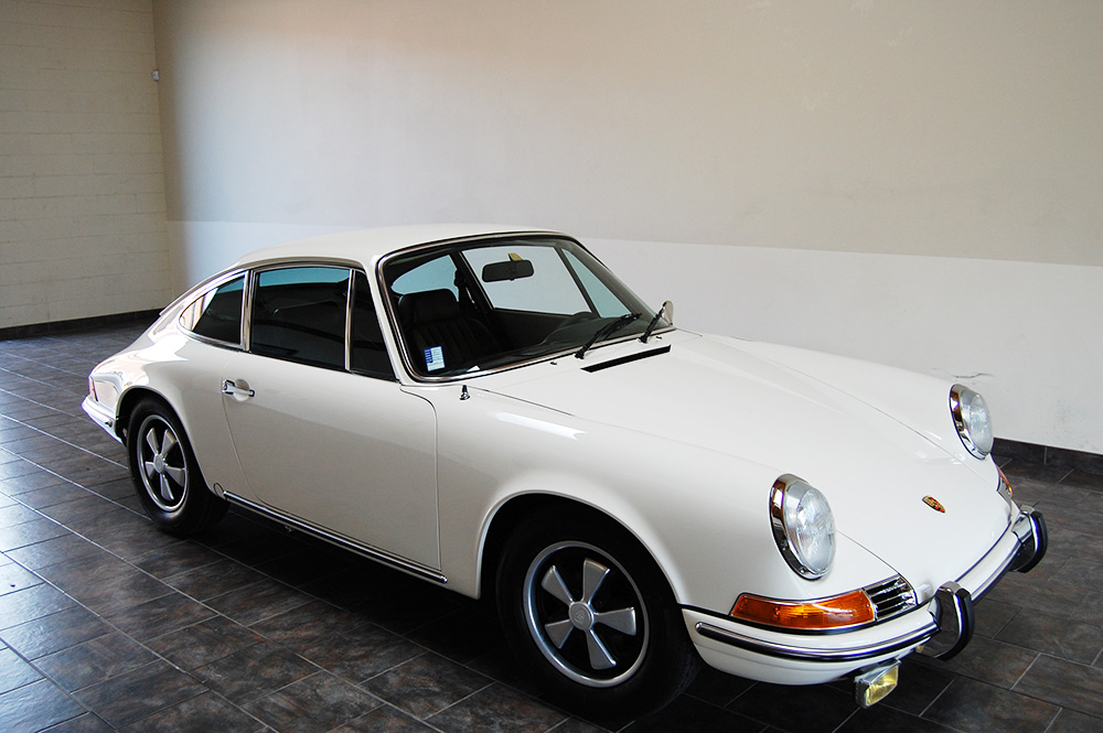 Gorgeous 1969 Porsche 911T painted in light ivory with a basket weave black German vinyl interior. The paint is outstandingly good and the interior is very original. The motor runs exceptionally well and the cars equipped sport exhaust makes it sound fantastic. Overall a wonderful example of a first year long-wheelbase car. SOLD
