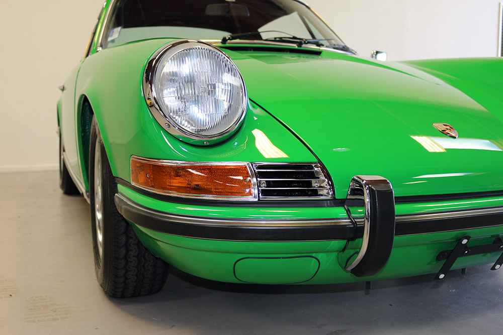Now available from CPR Classic is this stunning 1972 Porsche 911 Targa painted in Viper Green over a Black German Leather interior. The car has undergone extensive refurbishment since arriving to CPR including complete thorough color sanding to get the fresh paint job to brighten up beautifully. We also re-upholstered the front seats, and performed a major service on the engine and transmission including an MFI injection jump rebuild.