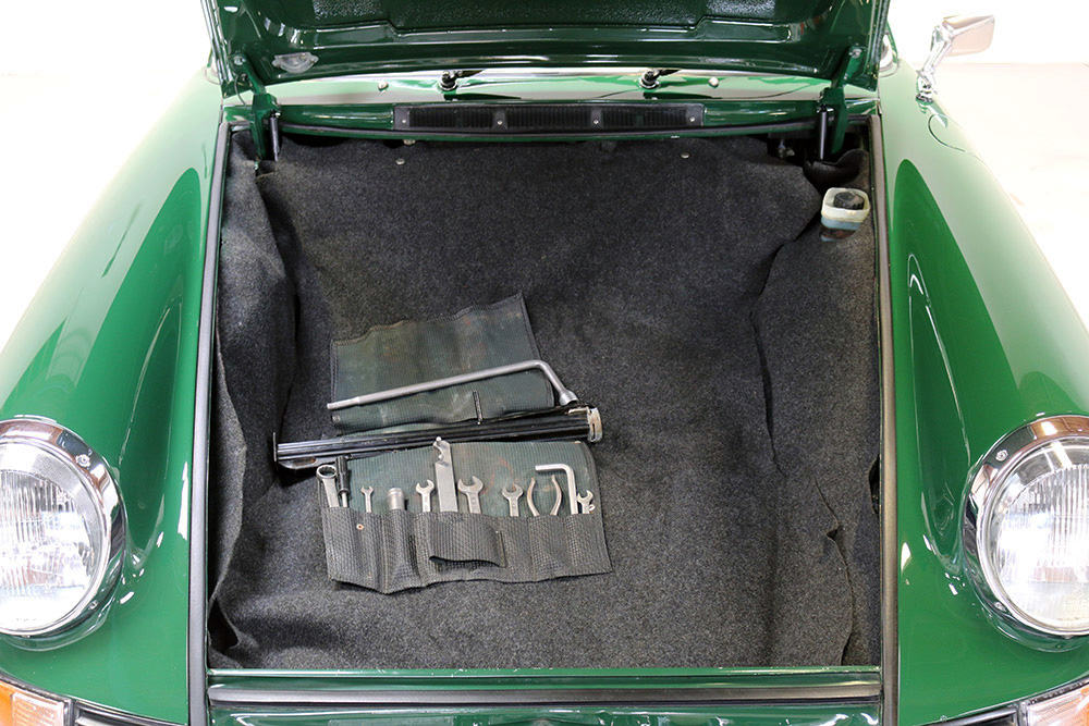 The car drives very tight and solid, cornering exceptionally well. The interior is in very nice condition with freshly restored sport seats, nice carpet and door panels in very nice condition. The car also has a very special early 60's Nardi Steering Wheel with a custom horn ring that really finishes off the lovely patina that this car retains.
