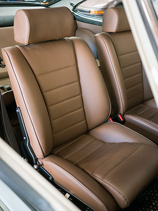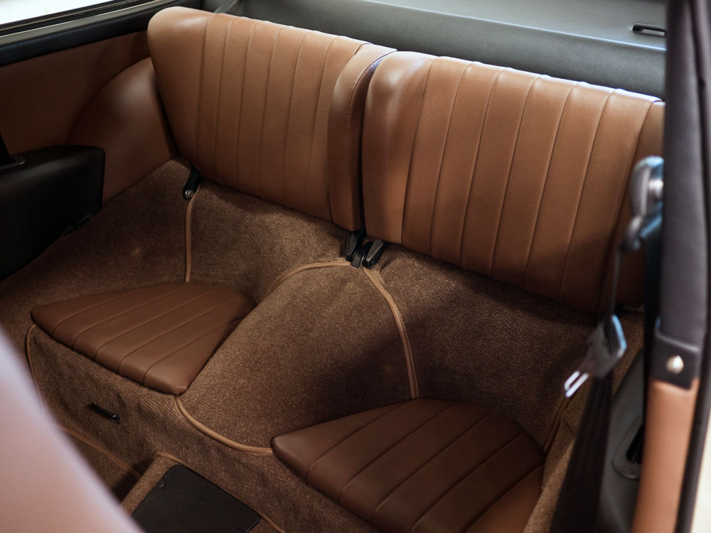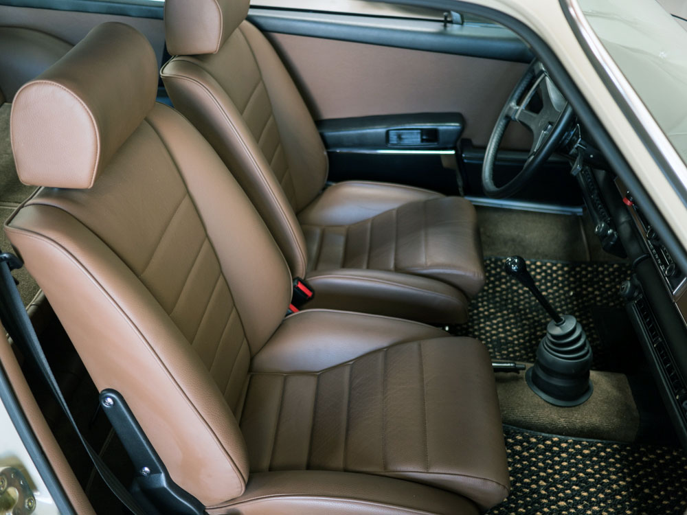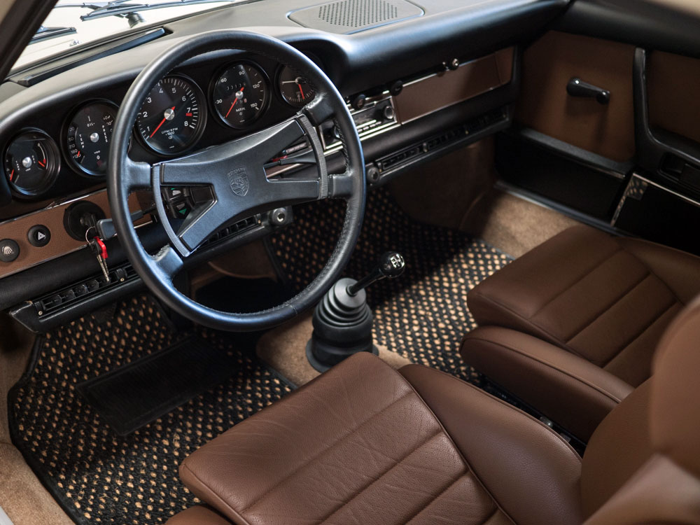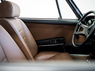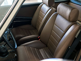 The factory original interior is dark brown full leather. The buyer has the option to change the interior color if the car is purchased prior to it leaving for the work to be completed.