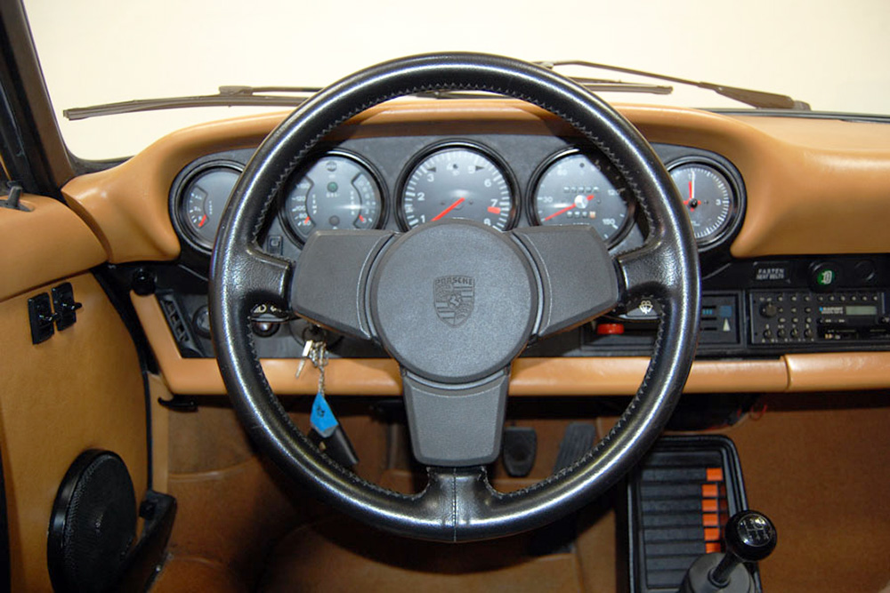 Most of these cars were heavily raced in Europe and are no longer faithful examples of the original. This example in its original factory Dark Bitter Chocolate with Tan vinyl interior is in excellent and correct overall condition. The car was sold new to a collector in Germany who rarely drove it and sold it to a collector in the US in 1989. The new US owner sent the car directly to the Porsche factory and had performance upgrades and interior seats redone at a cost of 58,000+ Deutsche Marks (approximately $33,000 at the time). The car was then shipped to the US and received US DOT and EPA certification. The complete releases and invoices along with all documentation from his ownership come with the car.