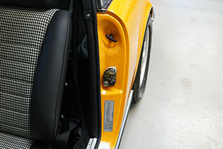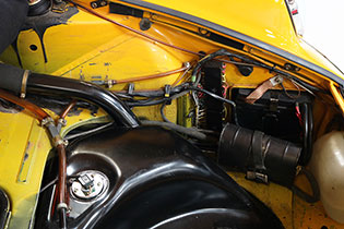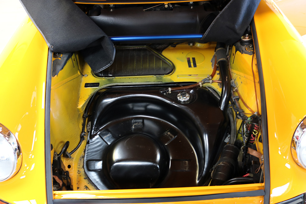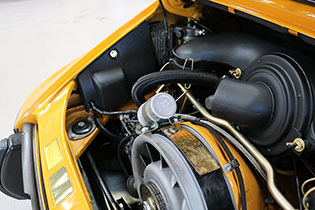 The body was stripped to bare metal, and repainted original signal yellow. Paint and undercoating on the belly pan, in the engine compartment and under hood is still original.