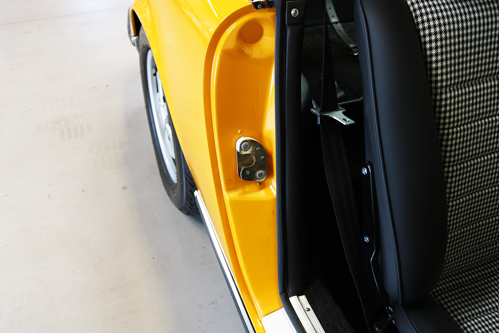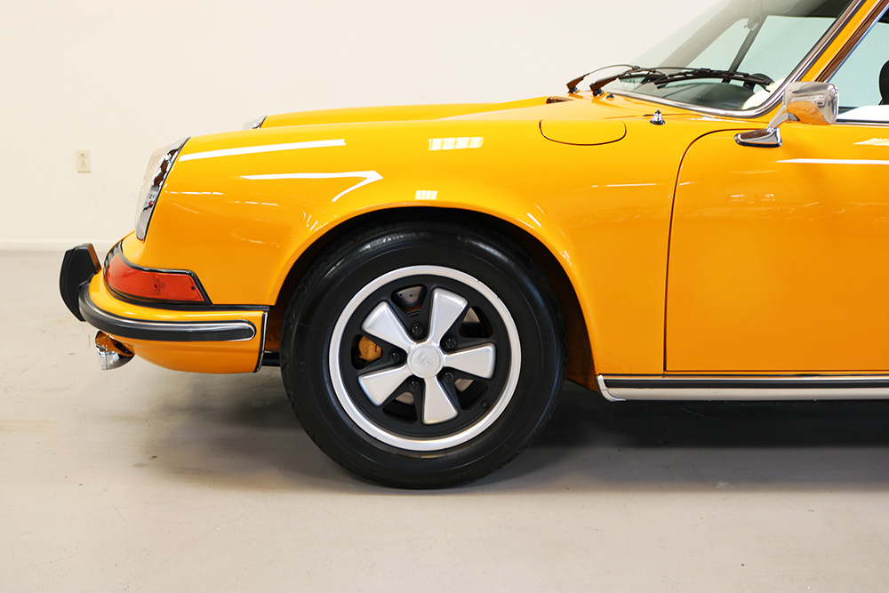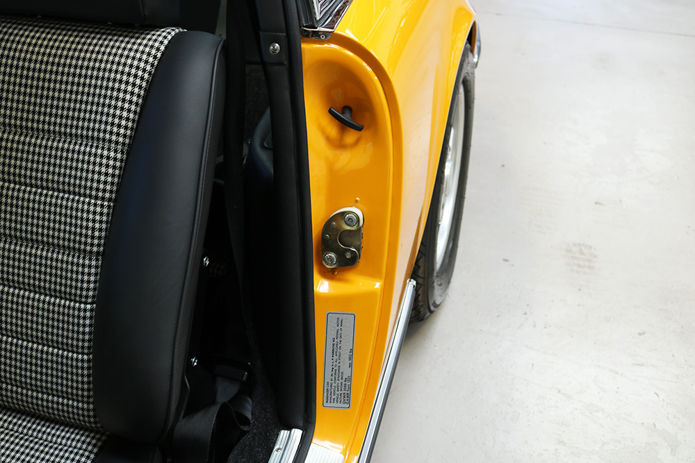 Now available from CPR Classic is this lovely 1973 911T painted in its factory original Signal Yellow over a black with hounds tooth interior. The car is a completely numbers matching example that retains all of its original panels and original undercoating.