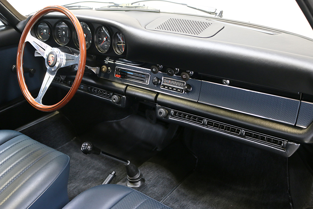 The original owner ordered the car at the factory in Stuttgart and provided a blue leather sample to have the interior completed in. The story and special interior color is documented through the cars history and its COA. The interior is listed as “Leather to Sample” on the COA. When the car arrived at CPR several years ago for its restoration, the original interior was intact and allowed us to replicate the identical color and inserts that the car was delivered with.