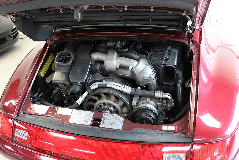The car is in phenomenal shape all around showing all original paint, and a flawless original leather interior. Regular oil changes and inspections were performed annually given the cars very limited mileage. Upon arrival, this 993 received a thorough inspection and detail.