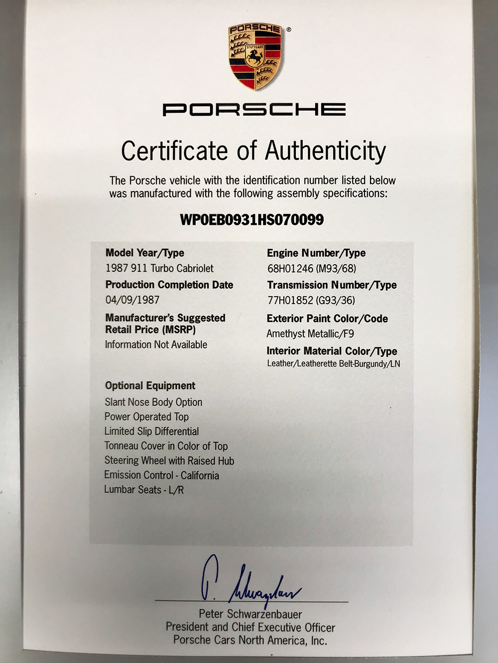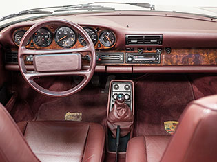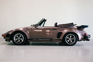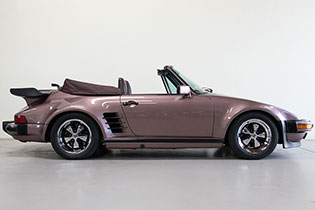 Now available from CPR Classic is this exceptionally rare Porsche 930 factory slant-nose cabriolet that was ordered and built in Porsche Special Wishes department. The car is finished in its factory-original Amethyst Metallic (F9) over a Belt-Burgundy leather interior with a factory-ordered wooden dash and color-matched canvas top. The car is believed to be one of only 6 factory slant nose cabriolets and one of only 3 delivered to the United States.