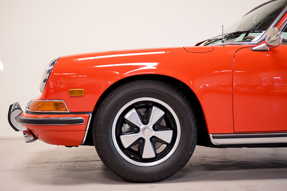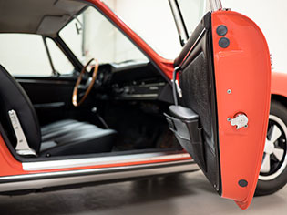 The sympathetic restoration of this 911L included a correct repaint in its factory Tangerine. The car has never suffered from rust damage and only very minimal bodywork was performed prior to the repaint. The respray was performed following a nearly complete disassembly which included a complete exterior disassembly and powertrain removal.