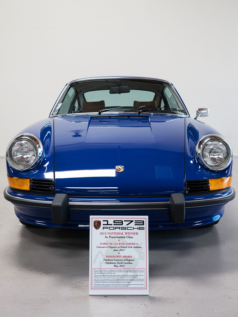 This 1973 Porsche 911S in Dalmatian Blue is incredibly original and serves as a remarkable example. 42,000 original miles, untouched cosmetically, and a PCA National Best Survivor winner! For more information please call our sales department at (760) 723-8900. Click any image for a larger size...