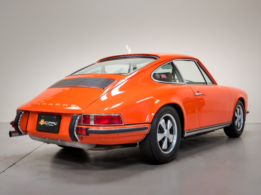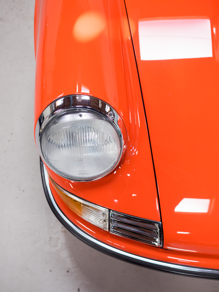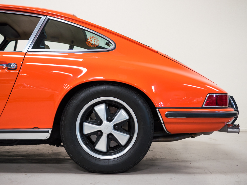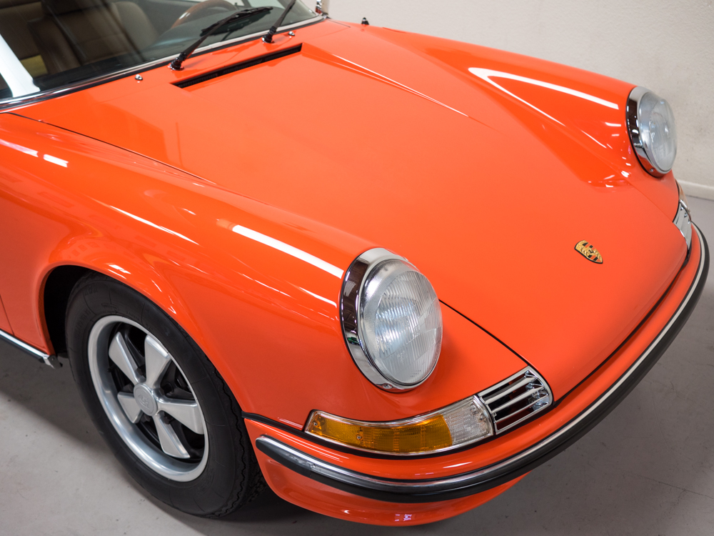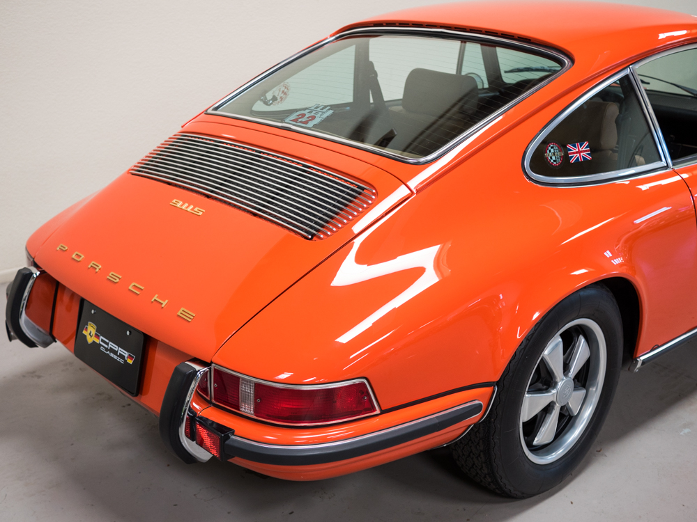CPR Classic re-acquired the car last year and we have since performed a major cosmetic restoration including a complete exterior repaint in it's correct tangerine. The car also received extensive brightwork, new chrome, weather stripping, and all new rubber throughout bringing this 911S to the cosmetic level near to that of our Concours restorations.
