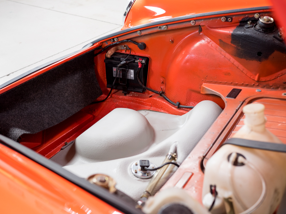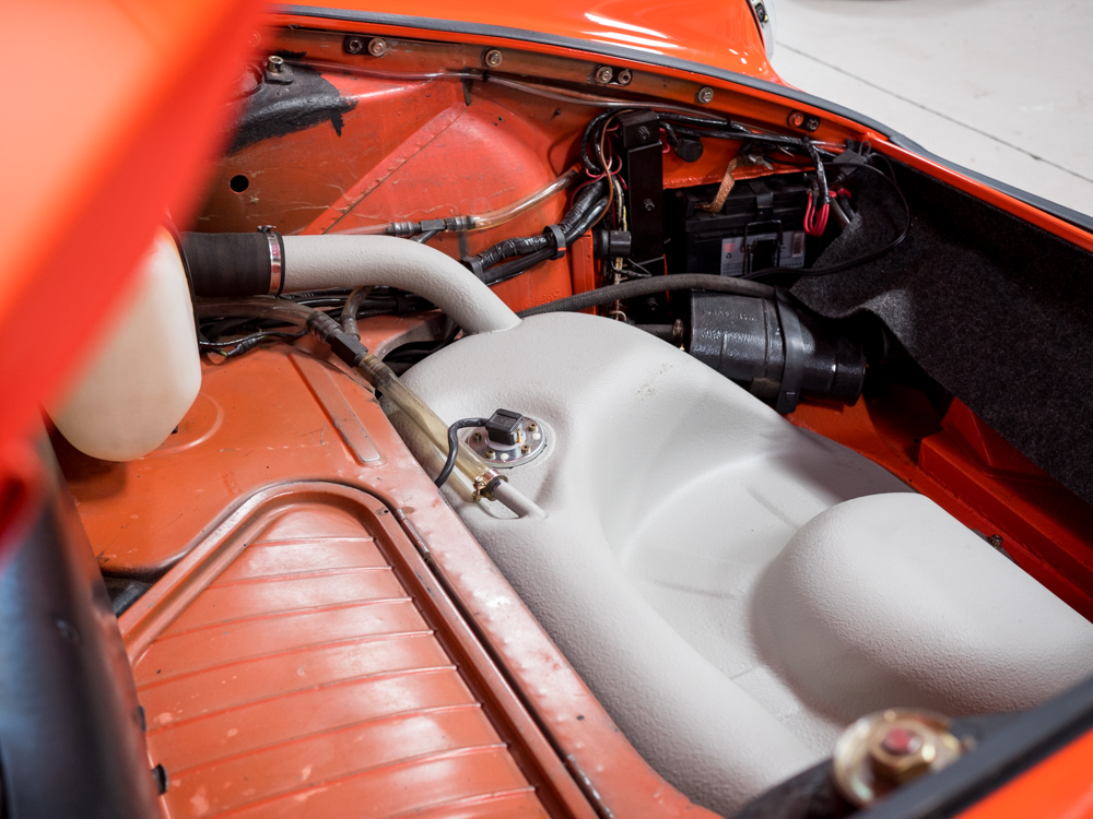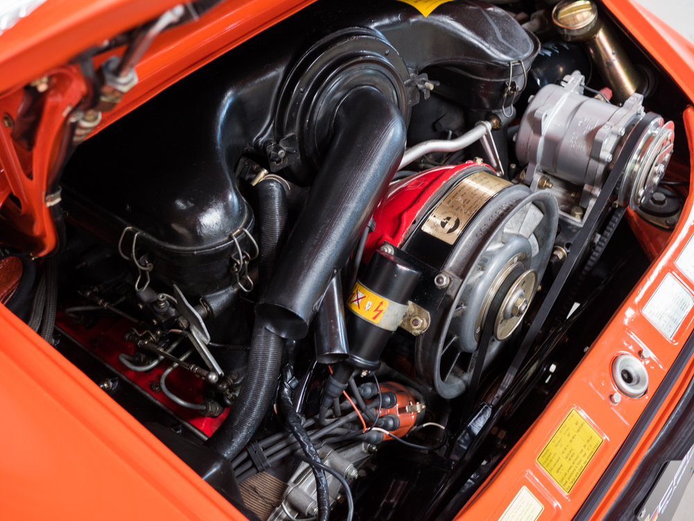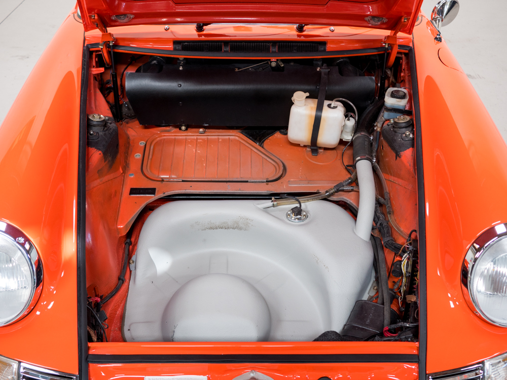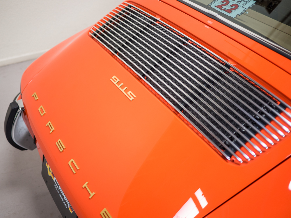 CPR Classic re-acquired the car last year and we have since performed a major cosmetic restoration including a complete exterior repaint in it's correct tangerine. The car also received extensive brightwork, new chrome, weather stripping, and all new rubber throughout bringing this 911S to the cosmetic level near to that of our Concours restorations.