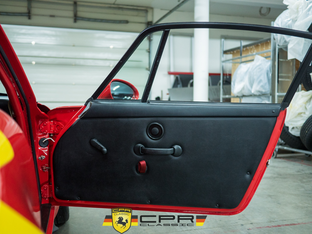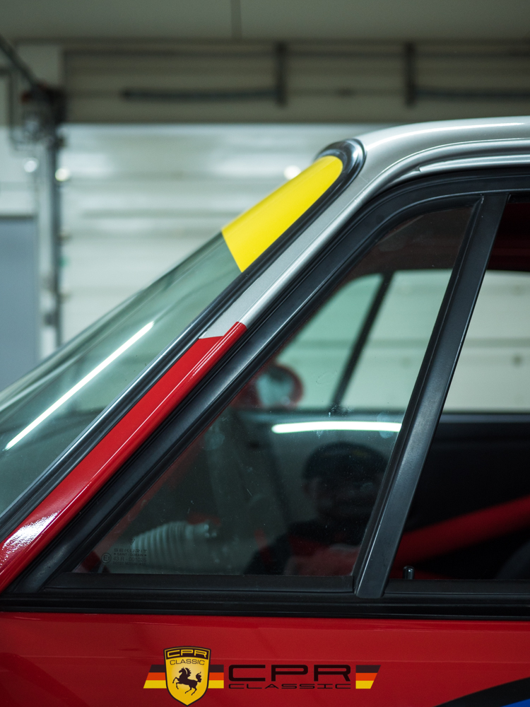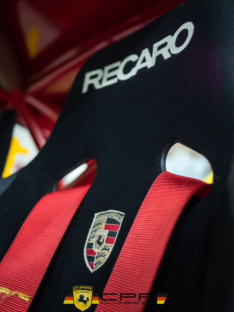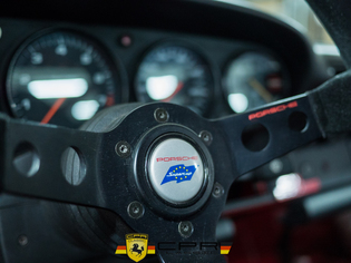 The car’s base color is Guards Red and its period racing livery has been perfectly recreated in vinyl over the painted surfaces.