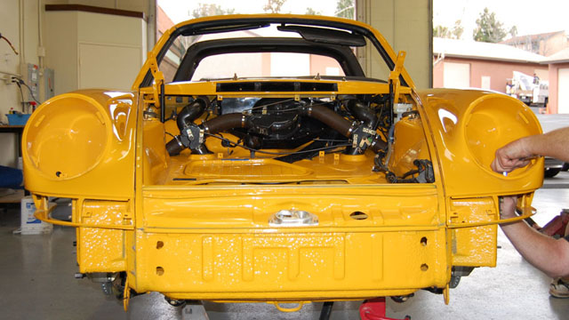 Where the tub and all body parts are prepped, etched, primed and blocked and undercoating is applied.